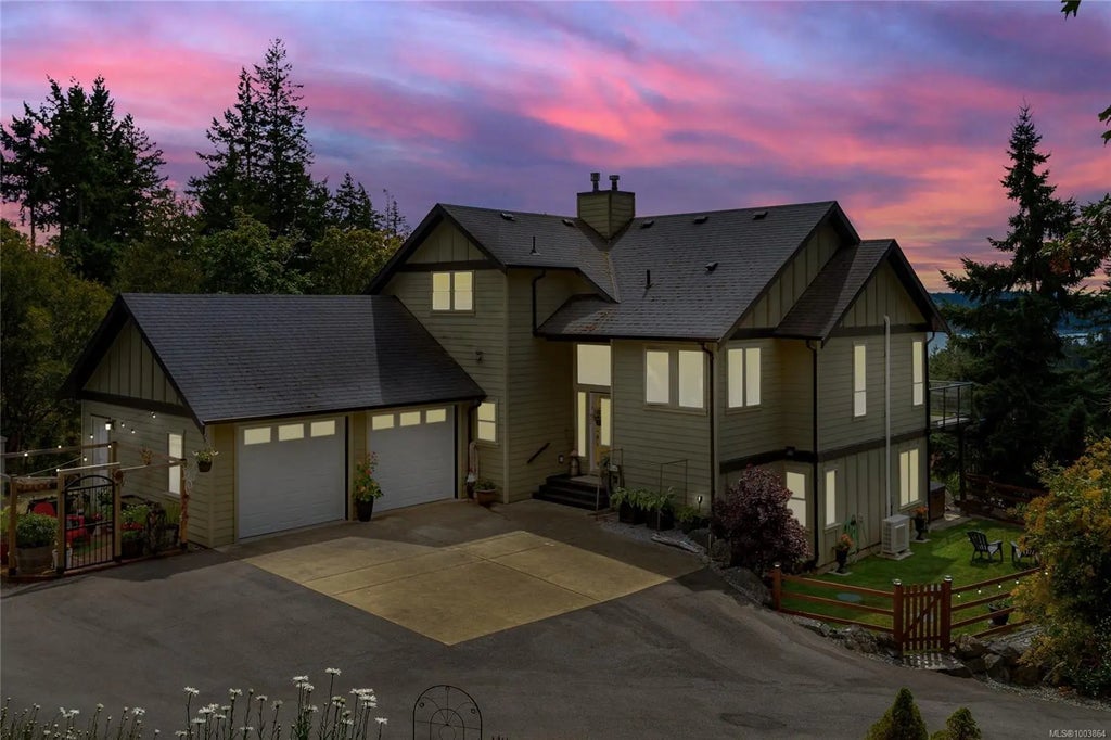 Stunning Ocean Views of the Sooke Basin! Welcome to your West Coast Retreat! Elegant 3 bed, 3 bath, home with almost 3000 sqft of designed living space & picturesque windows! A chef's dream gourmet kitchen complete with high-end appliances, ample counter space, pantry, & coffee bar flowing into the living & dining areas, ideal for entertaining or relaxing with family.A versatile loft provides the perfect spot for a home office, studio, or reading nook, all while enjoying breathtaking water views.Three spacious bedrooms designed with comfort & the primary suite offers a private escape with spa-like amenities.Heat pump for year round comfort. Outside, enjoy morning coffee or evening sunsets surrounded by mature landscaping & panoramic ocean views—nature truly becomes part of your everyday life. Lower deck offers serenity in your Hot Tub! Large Family room on lower level & massive crawl space! Gardens,RV parking Double Garage & 1 acre of bliss! Peaceful, Luxury!