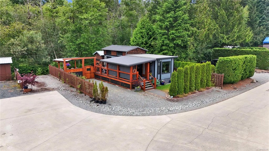 Looking for a vacation property that offers forest views, lake views & beach access? Look no further! Opportunity to buy a furnished vacation home at Great Central Lake, on your own strata lot (no pad fees or leases here!) - pack your bags & bring the boat (buyer to verify moorage availability)! This end lot has no direct neighbors & includes the park model & shed, plus RV parking - perfect for 2 families or multi-generational vacationing. The home offers a bedroom, full bathroom with a tub, plus a loft space upstairs that could be used as extra living space or guest room. Walk outside to your outdoor living area with a covered deck, fire pit and more! Walk right from your unit to swim at the shared beach on the quiet lagoon side of the complex, plus the strata offers a dock for boats, a beach & swimming platforms. Trestle RV park is a sought after community with pickleball, pets allowed, a common strata building with laundry (no coins, included in your strata). No rental restrictions!