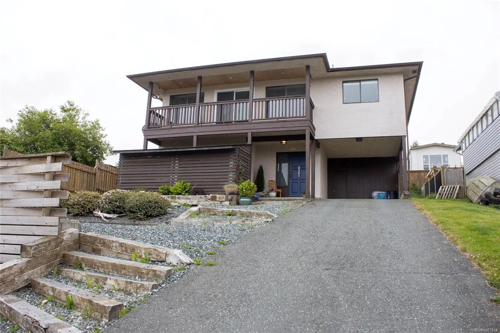 Tastefully updated 3-bedroom + bonus room, 2-bathroom home with stunning ocean and mountain views. Enjoy sunsets year-round from the covered deck. Renovated 6 years ago with quality materials, plus new kitchen, deck and stairs (2025), and a 4-year old roof. The main floor features a spacious rec room with built-in bar, 3 piece bath, den, laundry and a workshop/storage room. Upstairs offers 3 bedrooms and a 4-piece bath with heated tile floors and double sink Vanity. Fireplace-ready and includes a hardwired 8 kw generator for backup power. Wiring behind mantle ready for wall-mounted TV. Some original windows remain, offering potential for future upgrades. The private, low-maintenance yard is partially fenced and bordered by a mature privacy hedge. Located in a quiet neighbourhood, close to North Island outdoor recreation. A move-in-ready home with comfort, function and West Coast charm.