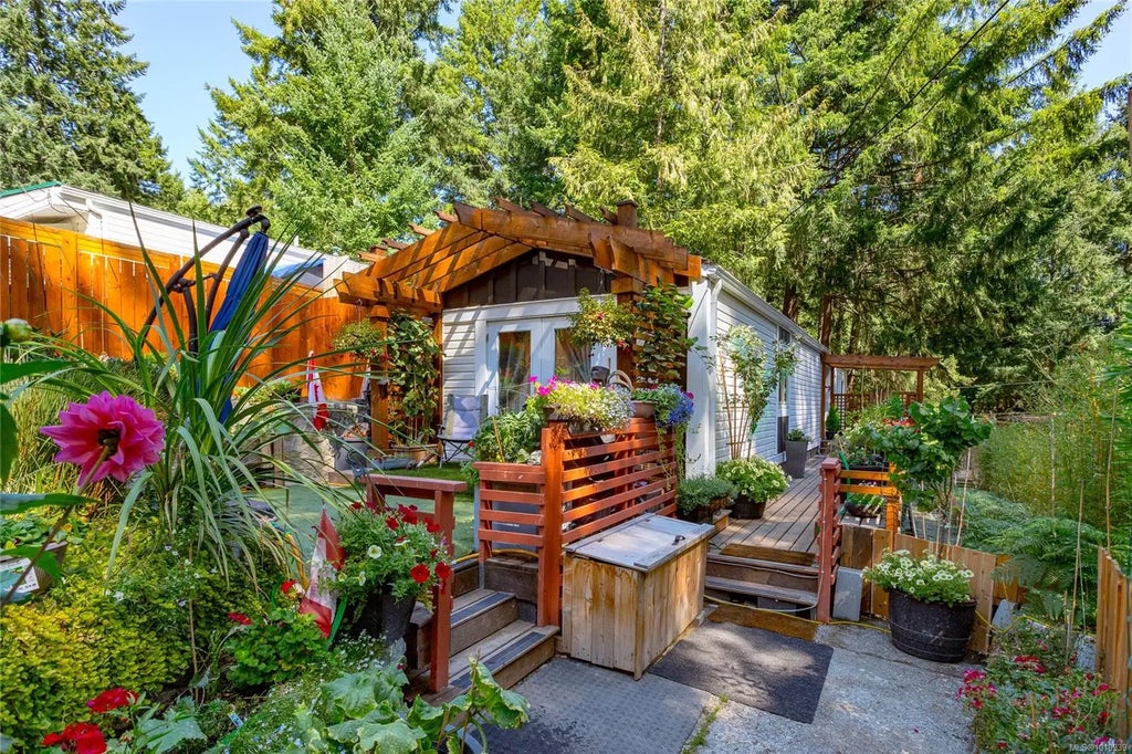 Skip the condo life and enjoy the beauty, spaciousness and privacy of this 2-bed, 2-bath manufactured home in Hidden Valley; a well-run 55+ park in the heart of Langford. Completely renovated in 2023, the home offers a bright, open concept layout, modern kitchen, two generous bedrooms, separate laundry room, heat pump for year-round comfort and ample storage. Outside, bask in your garden oasis featuring watermelons, strawberries, apples, tomatoes, pumpkins, cucumbers and more. Enjoy lounging on your large, sunny deck while your furry friends enjoy the fenced yard. If you ever manage to leave your little slice of paradise, Florence Lake is just steps away and a little beyond that, all of the conveniences of Millstream Village and Costco. Downsize without having to compromise!
