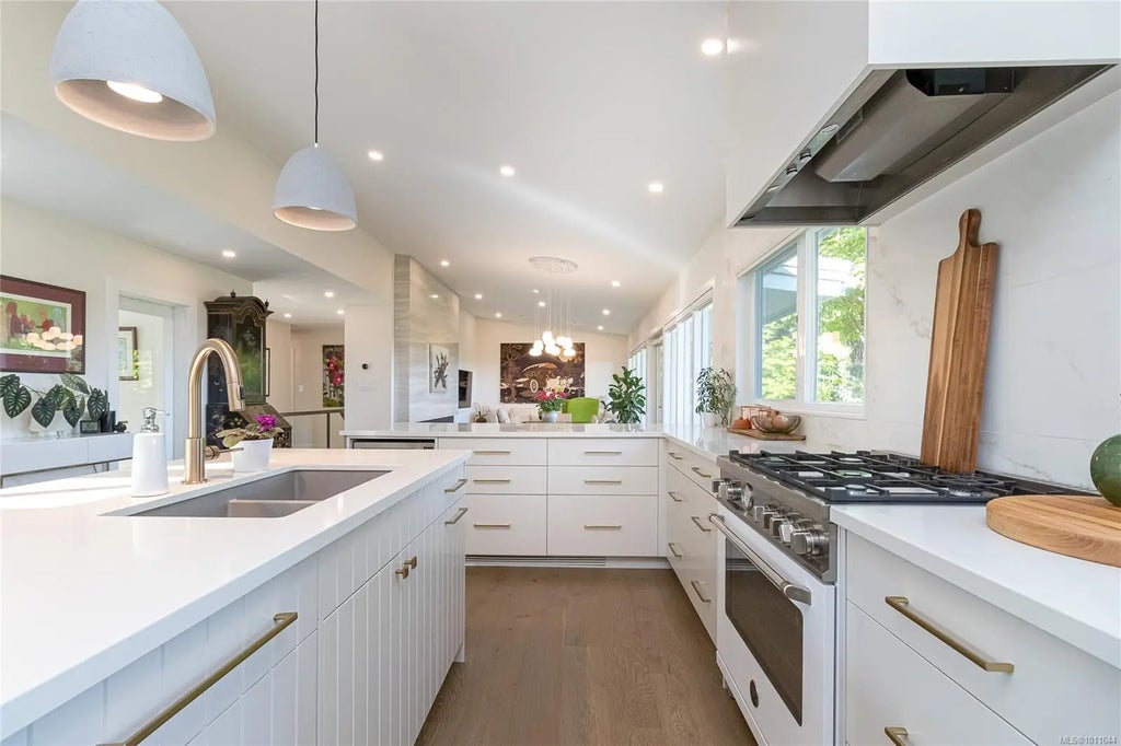 Welcome Home to Coastal Elegance – nestled on a beautiful (over 17,000sqft) lot! Step into this timelessly renovated home, designed by renowned Jenny Martin Design. Just mins from the beach, this gorgeous home provides for a single level living lifestyle with an open-concept layout that flows seamlessly onto a large deck overlooking your gorgeous yard & Views of Mt. Doug, the ocean down to Sidney & Cordova Bay. With a gourmet kitchen you'll be cooking all the time, high end appliances, ample cabinetry, large island & a wall of windows overlooking the lovely landscaped yard, ideal for garden enthusiasts or playing w/kids. Take in the morning sun on your large, private courtyard w/stunning Rhodos, wisteria & more. Downstairs, discover a versatile suite w/private access, offering potential for guests, extended family, or additional income. Don't miss this opportunity to make this home yours, and enjoy an all that this an amazing neighbourhood has to offer.