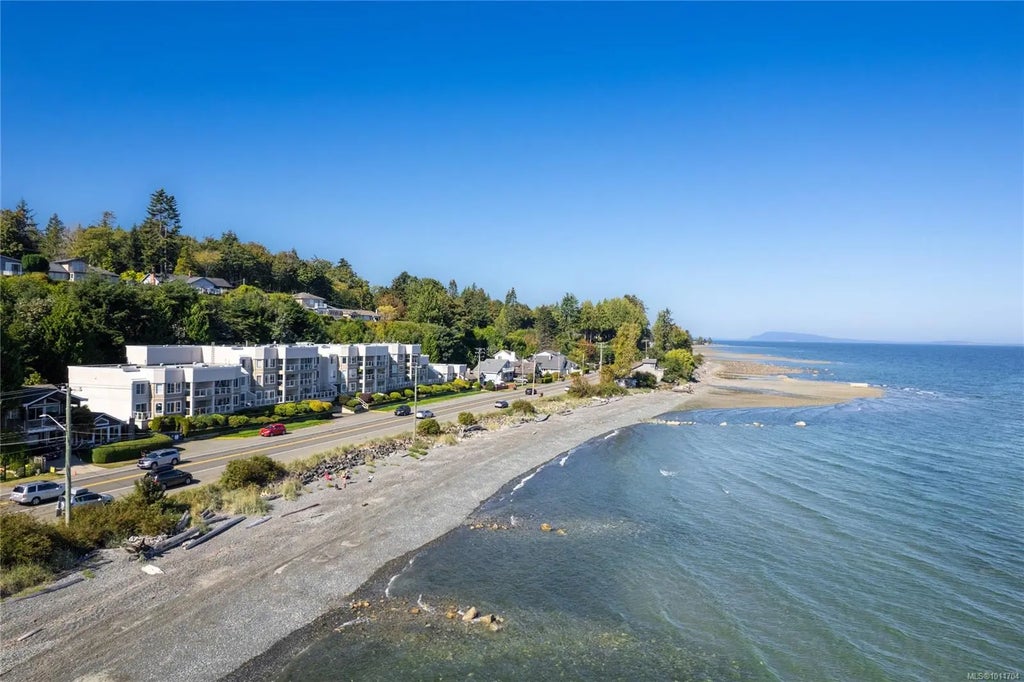 Oceanview Living in the Heart of Qualicum Beach. Enjoy retirement by the sea in this beautifully updated 2 bed, 2 bath condo offering 1,092 sqft of bright, coastal living. Just steps from the shoreline, this home boasts unobstructed ocean views and a spacious wrap-around patio extending from the primary bedroom to the kitchen, perfect for morning coffee, outdoor dining, or taking in breathtaking sunsets. The open concept layout features a cozy gas fireplace, and a generous storage room is located right next to your front door for added convenience. Secure underground parking is included, with storage space for your kayak or paddleboard. Residents also enjoy access to a well equipped fitness room and an inviting outdoor hot tub. Just minutes from the golf course and the charming shops and cafes of downtown Qualicum Beach, this is relaxed oceanside living at its finest.