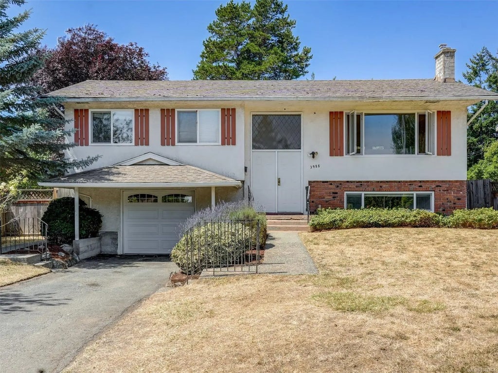 Lambrick Park home situated on a private 8000+ sqft property. This well-maintained home offers space, comfort, and an unbeatable location. The main level features three bedrooms, a spacious living room with a cozy fireplace, an efficient kitchen with a prep island, and a separate dining area with French doors leading to a large deck—perfect for entertaining and overlooking the expansive west facing backyard. The lower level includes two additional bedrooms, a den, a 3-piece bathroom, and laundry conveniently located off the attached garage. There's also a separate entrance to the backyard, ideal for extended family or suite potential. Enjoy year-round comfort with thermo-pane windows and efficient gas-forced air heating. Tucked away on a quiet no-through street, this home is just a short walk to UVic, University Heights, Tuscany Village, parks, and major bus routes.