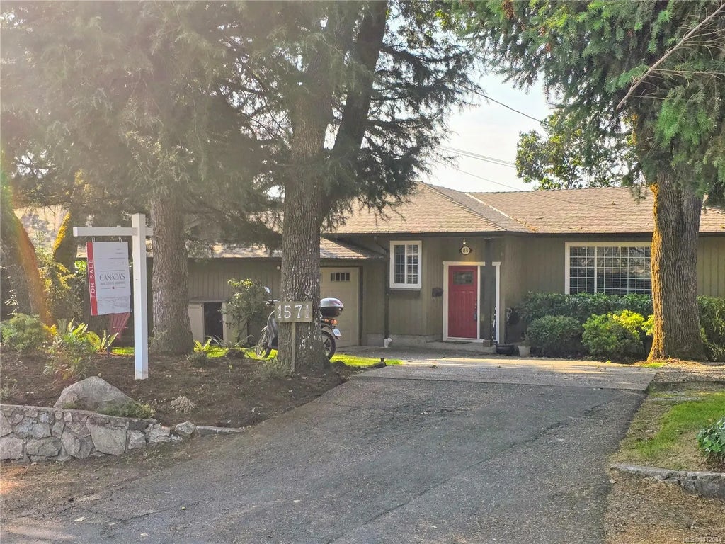 Welcome to 1571 Arrow Road, a charming and well-cared-for family home in the desirable Mt. Doug area. This property is ideal as a revenue generator or family home with a mortgage helper. The upstairs offers one-level living with an eat-in kitchen, spacious living and dining areas with a gas fireplace, a primary bedroom with ensuite, two additional bedrooms, and a full bath. The lower level features a large primary bedroom, second bedroom, generous living/dining with gas fireplace, updated flooring, paint, and more (2024). Convenient shared laundry and storage connect the two spaces. Recent upgrades include new kitchen appliances (2025), perimeter drain repairs, gas fireplaces, electric furnace, hot water tank, and more. Outside, enjoy a perfectly sized lot with mature trees, garden beds, a large deck, and a patio. Located near UVic, schools, shopping, transit, and Mt. Doug trails—a rare gem in Saanich East.
