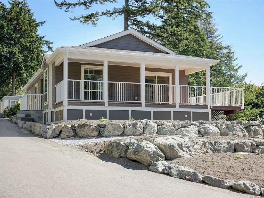 BRAND NEW manufactured home ideally situated in desirable Lannon Creek Park! Nothing to do but move into this bright, modern & tastefully designed 2 bedroom, 2 bathroom, PLUS den unit! Home features nearly 1,300sf of living with open concept floorplan, 9.5' vaulted ceilings & wide-plank laminate floors. Main living area awash in natural light with plenty of oversize windows. Slider access to 400+sf of covered & uncovered sun drenched deck space! Shaker kitchen with bar seating, in-line dining area & spacious living room. Bonus den makes a great option for home office or hobby room. Carpeted primary suite of good size with closet & 4-pce ensuite. Second bedroom & 4-pce main bath. Designated laundry. Formal front entry way & 1 concrete parking stall. Brand new storage shed included, & landscaping to be completed! Located in Sunny Saseenoes, just steps to the Galloping Goose Trail & just a short drive to all amenities Sooke & West Shore offer. Don't miss this opportunity! Price PLUS GST.
