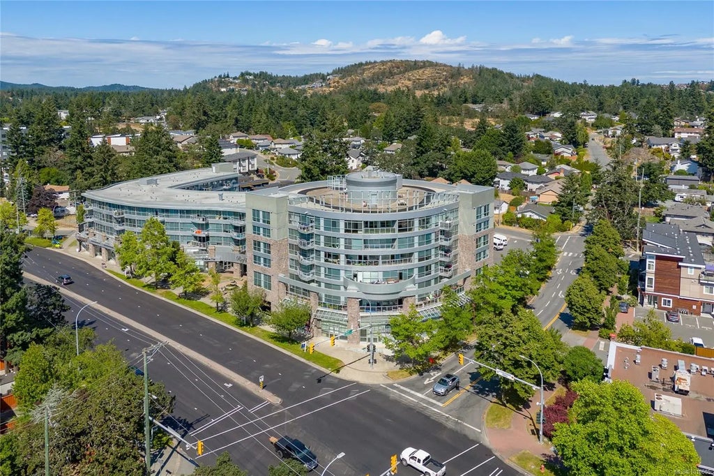 Experience elevated living in this top-floor penthouse, combining modern sophistication with durable steel and concrete construction. This bright, open-concept home offers two bedrooms, two bathrooms, high ceilings, and expansive windows showcasing sweeping mountain and city views. The gourmet kitchen features granite counters, stainless steel appliances, and an entertainer’s island. The spacious primary suite includes a walk-in closet and spa-style ensuite with walk-in shower and floor-to-ceiling glass. Enjoy in-suite laundry, wired surround sound, secure underground parking, and a storage locker. Residents also benefit from rooftop amenities including a running track, sitting areas, and a unique outdoor pool. Located in the heart of Goldstream Village with cafés, shops, parks, and transit steps away, this home offers a rare blend of comfort, luxury, and convenience. A standout opportunity in one of the Westshore’s most vibrant communities.