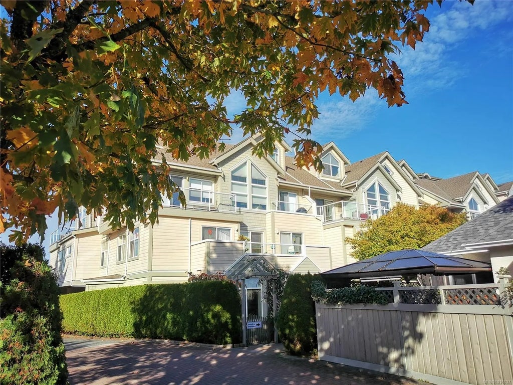 TOP FLOOR CONDO, VAULTED CEILINGS AND HUGE DECK! Beautiful top-floor 2 bedroom, 2 bathroom condo in the heart of Sidney with north-facing views toward Salt Spring Island. This bright and spacious 1,070 sqft home offers a desirable layout with bedrooms on opposite sides for privacy, vaulted ceilings, skylights, and an open-concept living/dining area. The kitchen is functional and filled with natural light. Enjoy in-suite laundry, a huge private deck with distant views of Mt Tuam and a separate exterior storage room.Well-managed 1995-built building with a remediated exterior envelope. Walkable to Thrifty Foods, shops, restaurants, and all of Sidney’s fantastic amenities. A rare opportunity for top-floor living with views in a prime location!